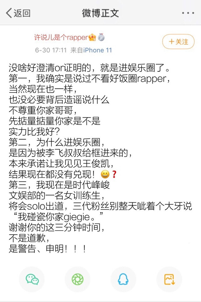 不过,许说确实不太喜欢饭圈rapper。