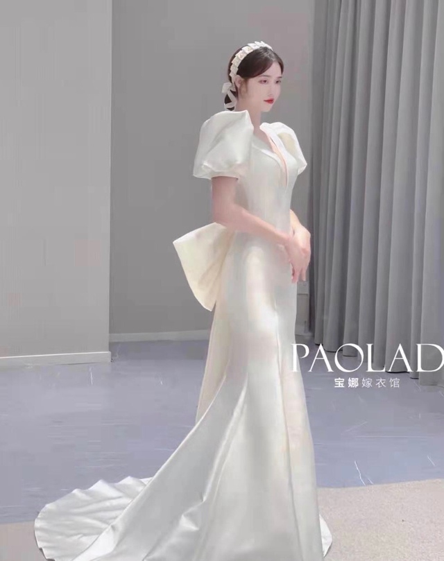 文依涵穿了一件很温柔的白色鱼尾裙