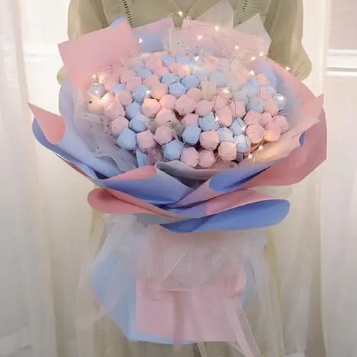 说着苏栩落跑了出去抱来两箱海苔,还有五束棒棒糖花束。