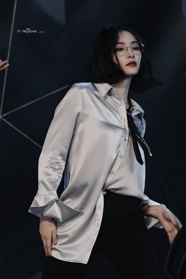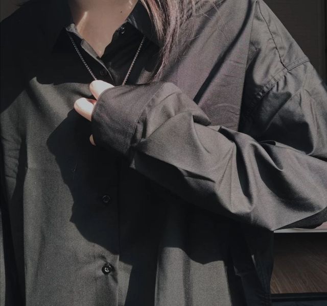 宋清栀[黑色廓形绸衬衫+西装面料自制阔腿裤]