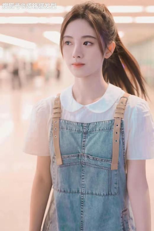 赵甜妮长发扎了起来,穿着牛仔背带裤,15岁的她也长高了,现在差不多有164。
