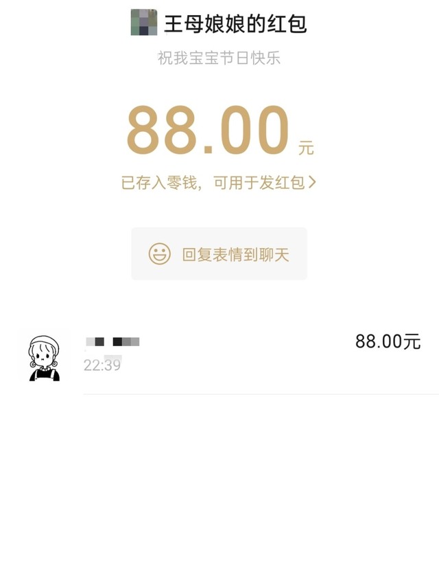 还是有一点点好处的,我妈给我发了一个红包。