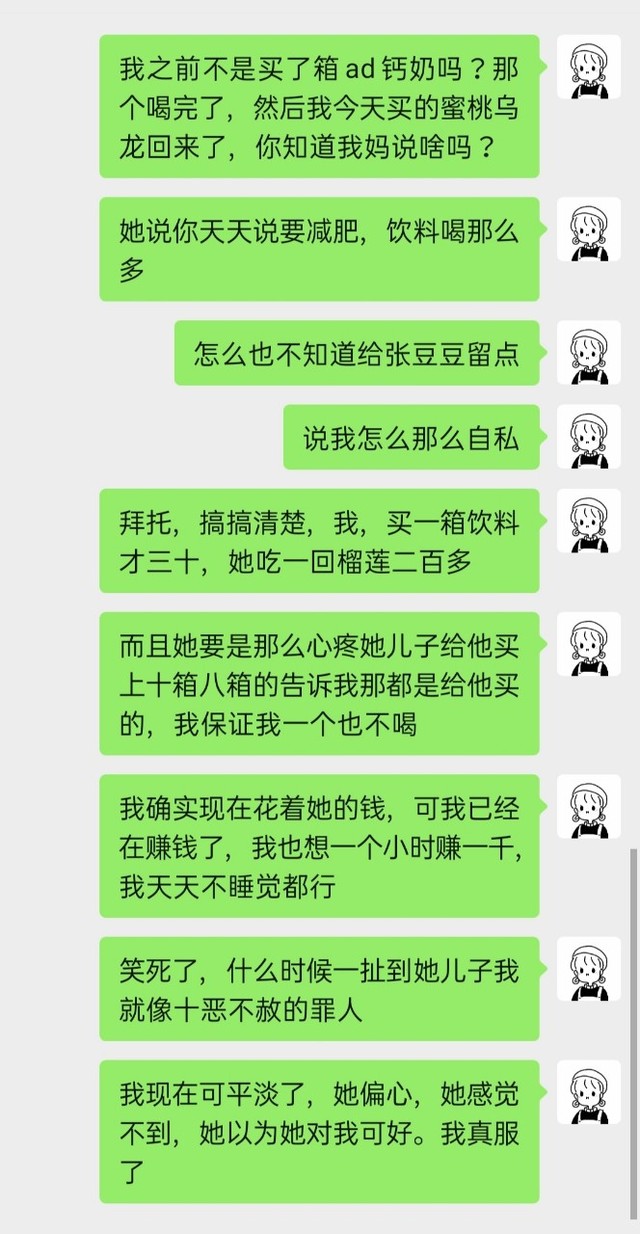 我本来就对我弟弟没有太多的情感,他要喝再给他买不就好了吗?他现在在我大舅家,我凭什么要每一件东西都给他留一份,将来我买房子了是不是还要给他买一套一模一样的才显得我不自私?