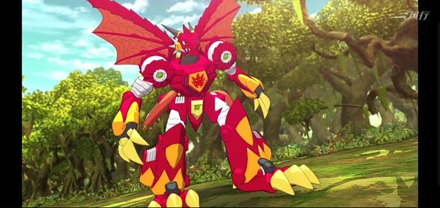 雷古曼(铠甲兽龙)火焰巨龙,你居然敢当着我的面,想把小熠抓走,不可饶恕!我要好好教训你,为小熠出气。(手指着焰火龙)