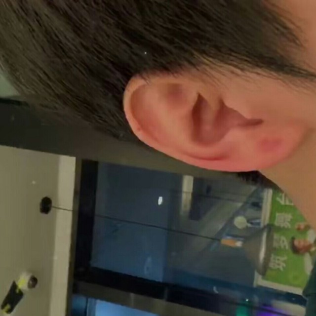 一只手摸着耳朵。