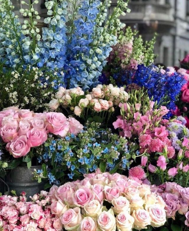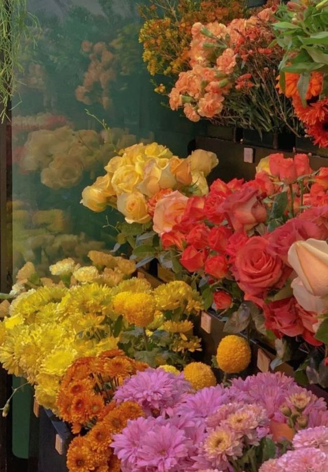 来到花店里面,店的陈设整洁大方,还有并不冲突的花香味。这里有各式各样的花,粉色的有月季,芍药,蝴蝶兰,康乃馨,垂丝海棠……白色的有白玉兰,玲花,风信子,满天星……蓝色的有蓝色妖姬,绣球,蓝雪花,鸢尾花,蓝蝴蝶,勿忘我……紫色有紫藤花,铁线莲,倒挂金钟,薰衣草,紫罗兰,桔梗,美女樱,聚花风铃草,紫薇花……红色的有樱桃妮芙,娜塔莉,初夜,橙宝石,沙漠玫瑰,虞美人,彼岸花,扶桑花,天竺葵,大丽花……百花齐放,各有各的美,即使有的看起来不是那么艳丽,却因为它们一朵又一朵的簇拥着,显得异常好看。