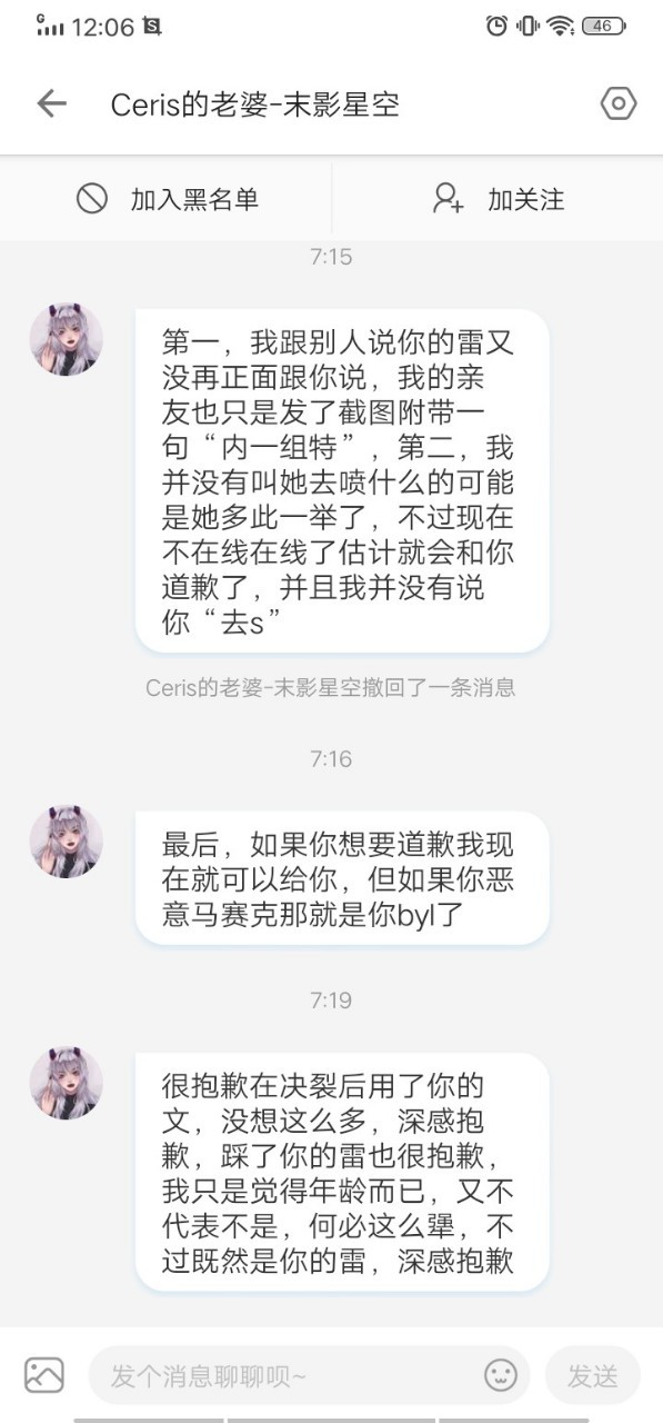 现在就是静静等着她的那个亲友的道歉就好