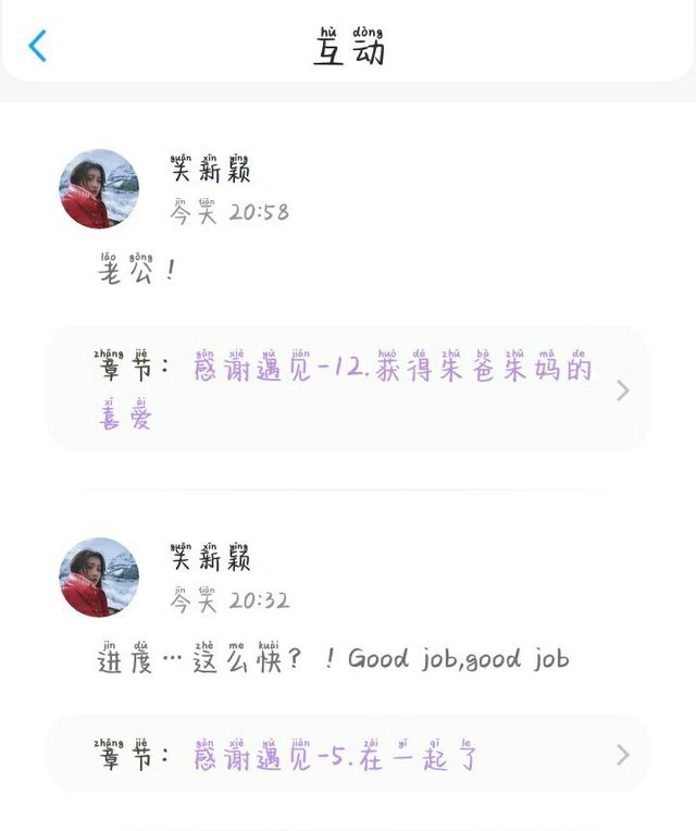 今天看到了一个特可爱的小姐姐截图给你们看看,但她现在才看到不多的章节所以呢等她看到这可能很久了hhh