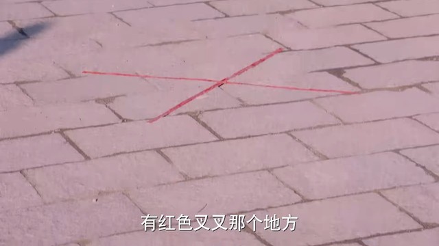主任对,有红色叉叉的那个地方,【主任指了指不远处地面上红色叉叉的地方】
