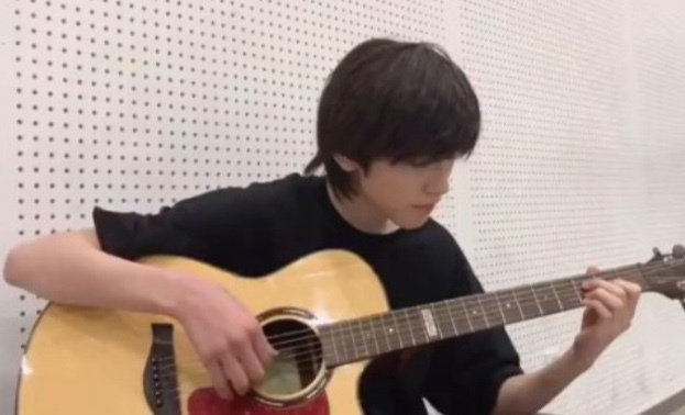 说完 宋亚轩对照着谱子弹起了吉他
