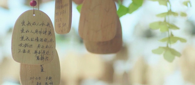 清晨阴霾消散,昨日露营的地方几棵树上挂了几个许愿牌。