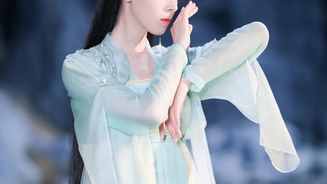 纤薄的霓裳随风飘舞,缭绕的羽袖左右交横。英戾却不失柔润的姿态飞舞散开,手中扇子合拢握起,似笔游龙绘丹青,玉袖生风,优雅从容。