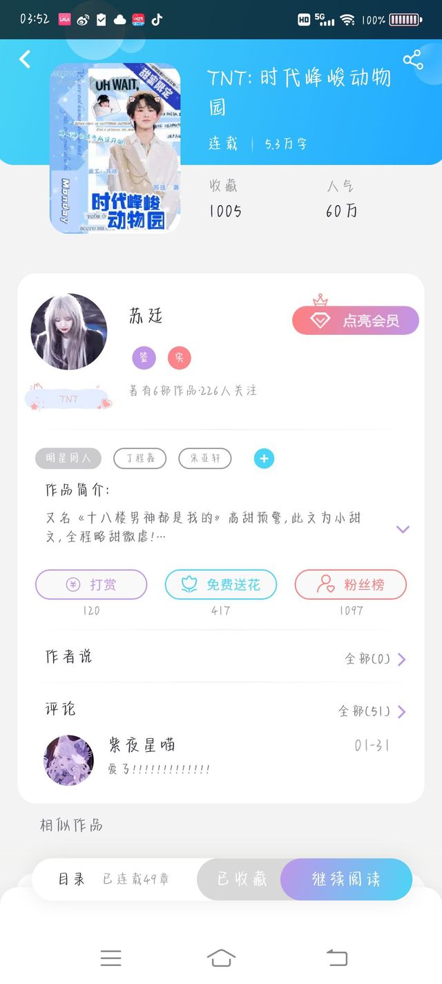 傻不拉叽的大大加更会有,但是会欠着,一起更。