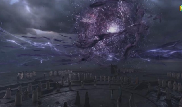 天启见紫月不再变大,随即将其吸入身躯,伴随着紫月消失,天启周身绛紫的光芒变的更加深沉,额间浮现出紫月般的真神印记。