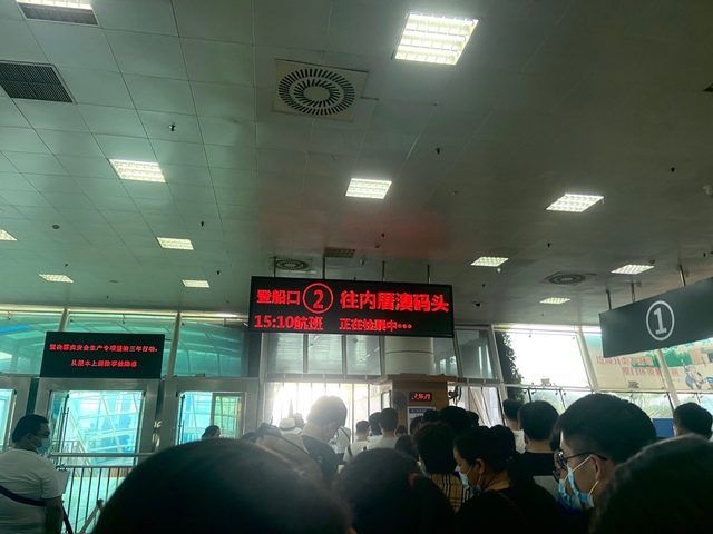 可以说是候船厅里面人山人海,我们找个地方坐下等着开船。