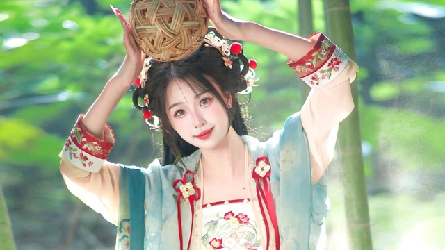 顾词谣今天穿了一套青绿色汉服,手里还拿着一个蹴鞠,是等下节目要用到的。