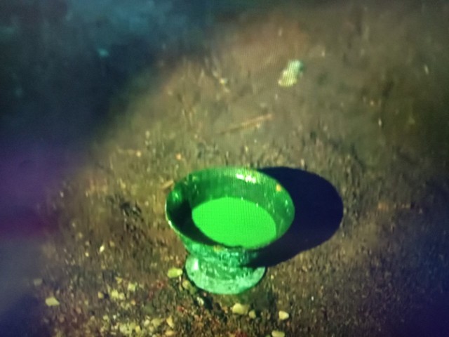吴邪嗯了一声,手电照着棺材,蹲下身,看那一滴一滴从棺材里滴落到碗里的绿色液体