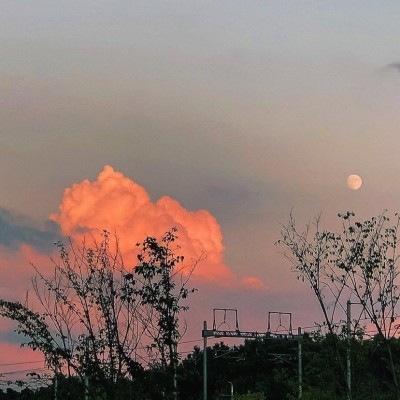 薄雾缭绕、白纱般的柔柔地漂浮在空中。