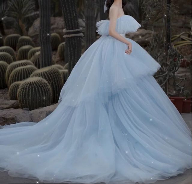 温如酒如果是拍婚纱照的话,我希望我能穿着蓝色的婚纱,抹胸,拖地长裙,像个公主一样!