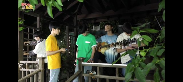 瑶瑶站在台阶上面,看着下面坐成一排的马嘉祺,丁程鑫,贺峻霖,刘耀文笑着说