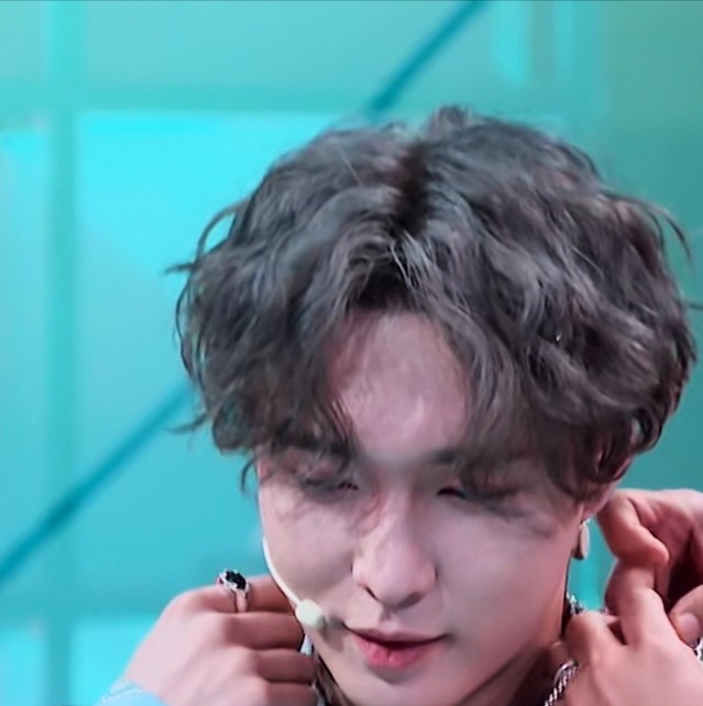 其实张艺兴不是头大,只是头发嘭起来,害怕压到发型。维妮被他这自损的一招成功逗笑了,看着面前对方特意蹲下弯腰的身体,轻轻的伸手给他戴上项链。