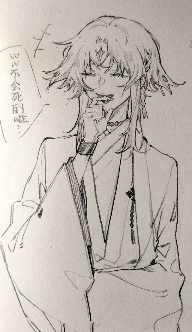 拥有比阳光更为耀眼,比明月更为照耀的银色发丝,玩世不恭的嘴角勾勒着对世间万物的讽刺,可以幻想着,他浅笑着,说着最爱你了,一边缓慢割下你的脑袋的样子。