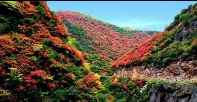四人来到了山下,眼前的一幕真的是美炸了,山上的枫树层次分明,一片红色,一片绿色,一片黄色,颜色交替,让人眼前一亮