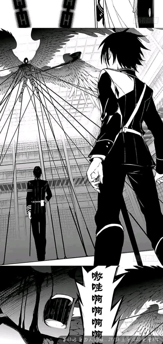 百夜优一郎看着缠着锁链的天使和不远处的一濑红莲握紧了拳头。