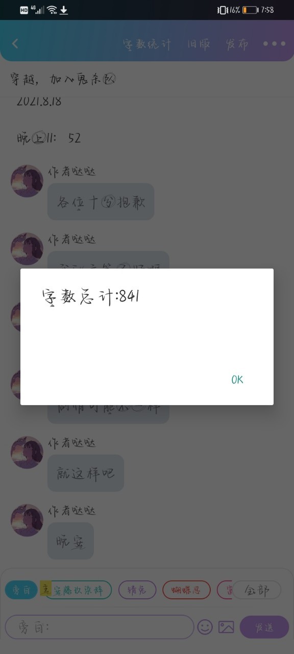 我上一章还有841个字