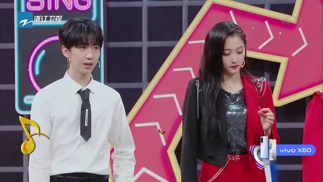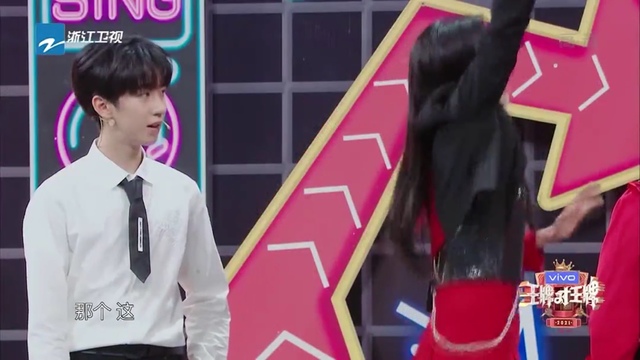 贺峻霖一脸懵的看着关晓彤在那蹦哒。