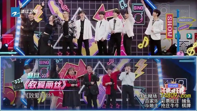 下一题出来以后嘉宾们纷纷跑了上去,但是奈何时代少年团的孩子们永远最快,丁程鑫在华晨宇扑上来的一瞬间抢走了麦克风,后面就听见了张真源稍微撕哑的声音。