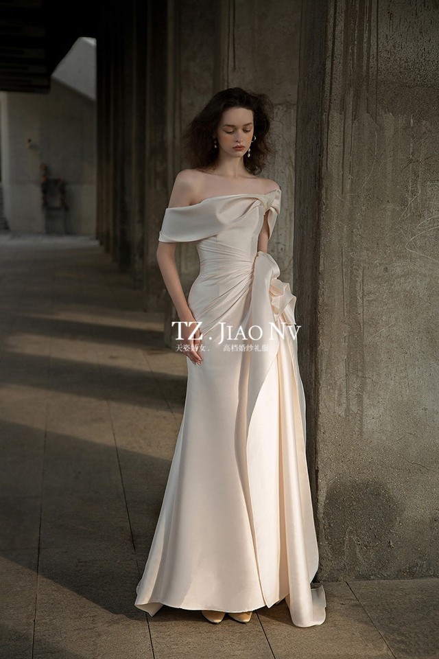 你换完衣服就捂着胸口,这个不能低头啊,其他的都还好,裙摆不长不短你踩不到,不过这个袖子容易滑肩
