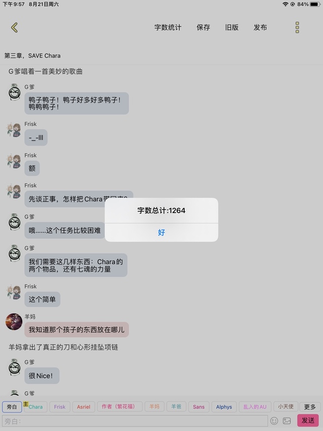 G爹然后把它摘下来,在里面重复三次“Chara”
