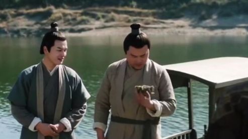 指着其中一个,然后看着后面在岸上的周生辰。