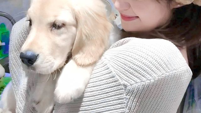 池桃看着小将军,下一秒拥它入怀。