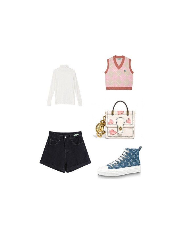 你没办法只能穿了一件高领上衣,梳了一个丸子头
