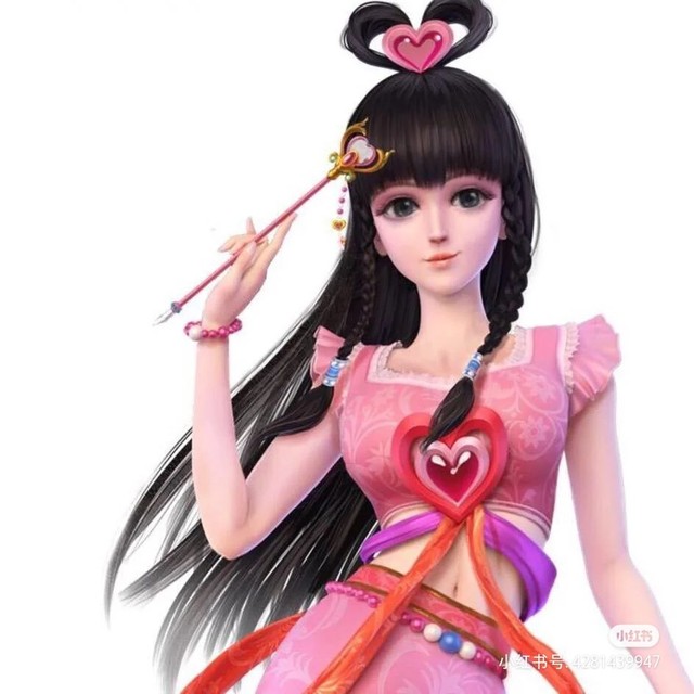 一个少女头上一个爱心,身穿粉衣服