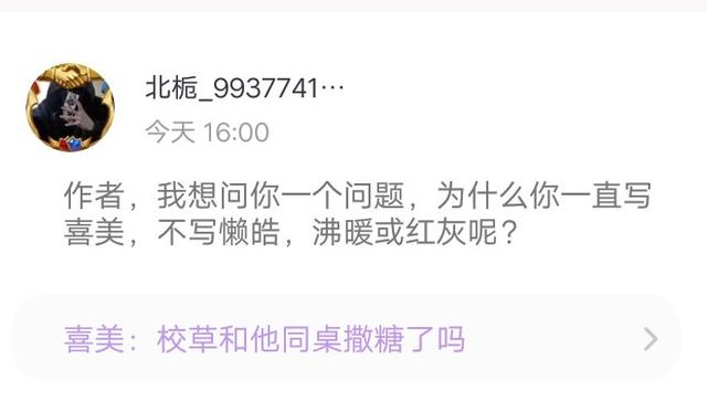 莫南爵(作者)是这样的,我个人很喜欢喜美cp,我的网名也正如其来——喜美cp无敌。如果说你们喜欢懒皓或沸暖或红灰的话,我会再开几本书,写懒皓,沸暖,红灰的