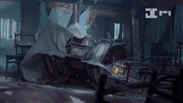 一进来 房中的铃铛便响了起来 台上出现了一些身影 是云遮月的身影 便唱了起来 随后屋子中的气氛变成了以前热闹非凡 人多客满 傅容刚要要陆绎就被陆绎打断说道、“先看戏 ”二人便看了起来可突然。云遮月死了 傅容上去扶云遮月 傅容着急道“他他他死了”陆绎将他拉起说“他早就死了”傅容再一看手上的鲜血 却消失不见了