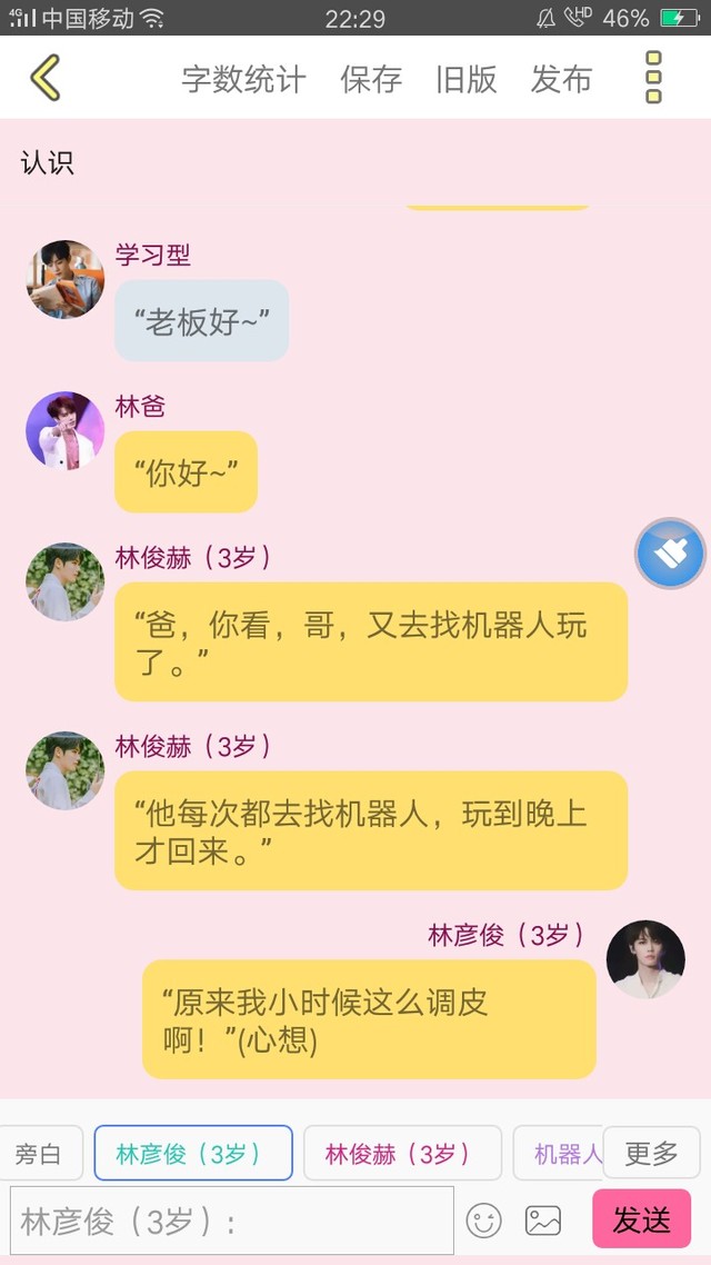 林彦俊(3岁)“爸,那我先和学习型走了。”