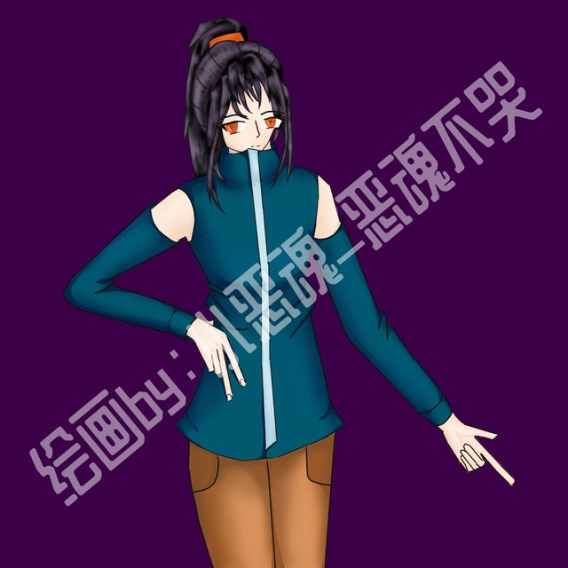 头发:黑色长发,有一缕是米白色,一般梳成高马尾。