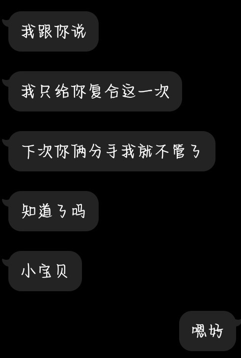 然后当天晚上哥哥和闺蜜去找他说然后就复合了就复合了几天然后又分了当时哥哥和我说就帮我复合这一次在分了他就不管了。