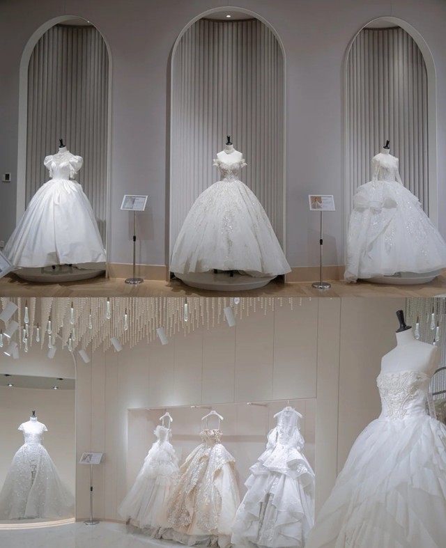 婚纱店,师娘牵着念安进去,笑脸盈盈