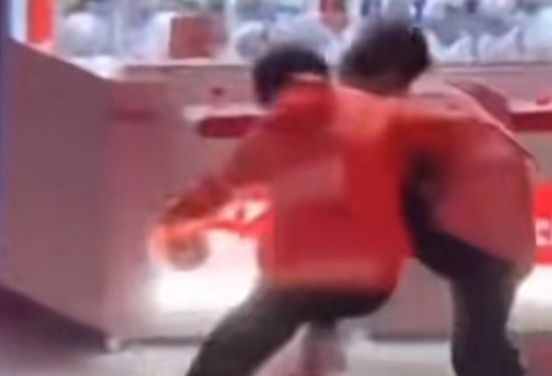俩人在娃娃机旁边开始争夺起了一个