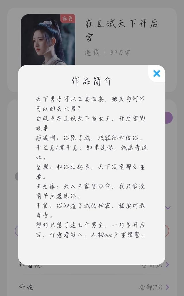 作者浅浅夹带一下私货哈哈哈,推隔壁柠檬冰美式大大的书《在且试天下开后宫》,嘿嘿,喜欢的走过路过不要错过,我的书架里就有👏👏