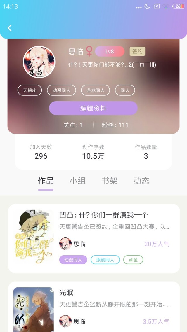 思临·作者渣渣本渣贺人气到20w