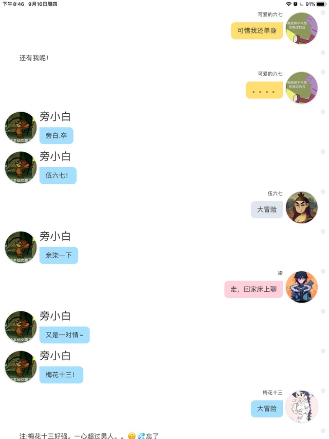 汤圆柒称呼五六七为老婆哩~