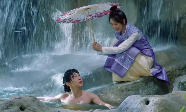 本来旭凤正好好的享受温泉的舒适感,结果,发现头顶的水居然没有了。抬头一看,不正是那个女扮男装的小葡萄嘛。