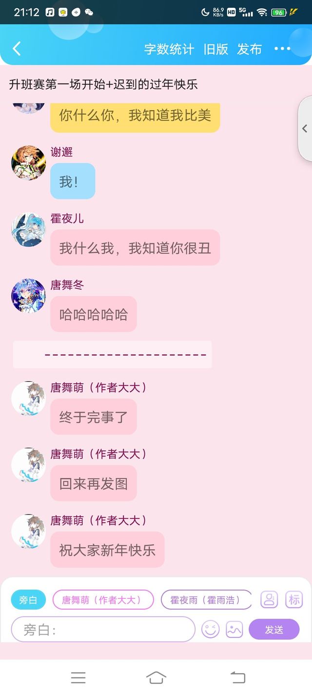 唐舞萌(作者大大)好啦,别逼逼,换线