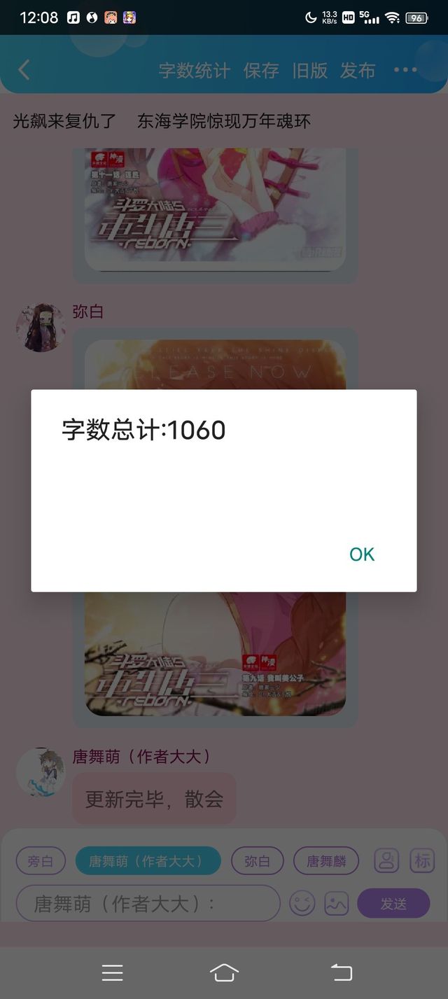 唐舞萌(作者大大)更新完毕,散会